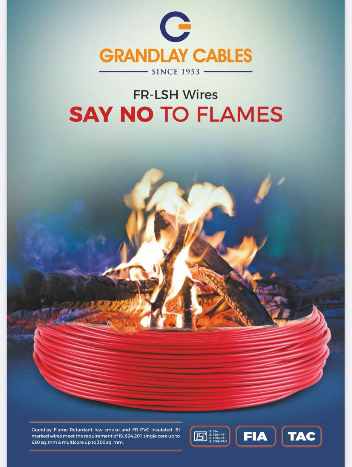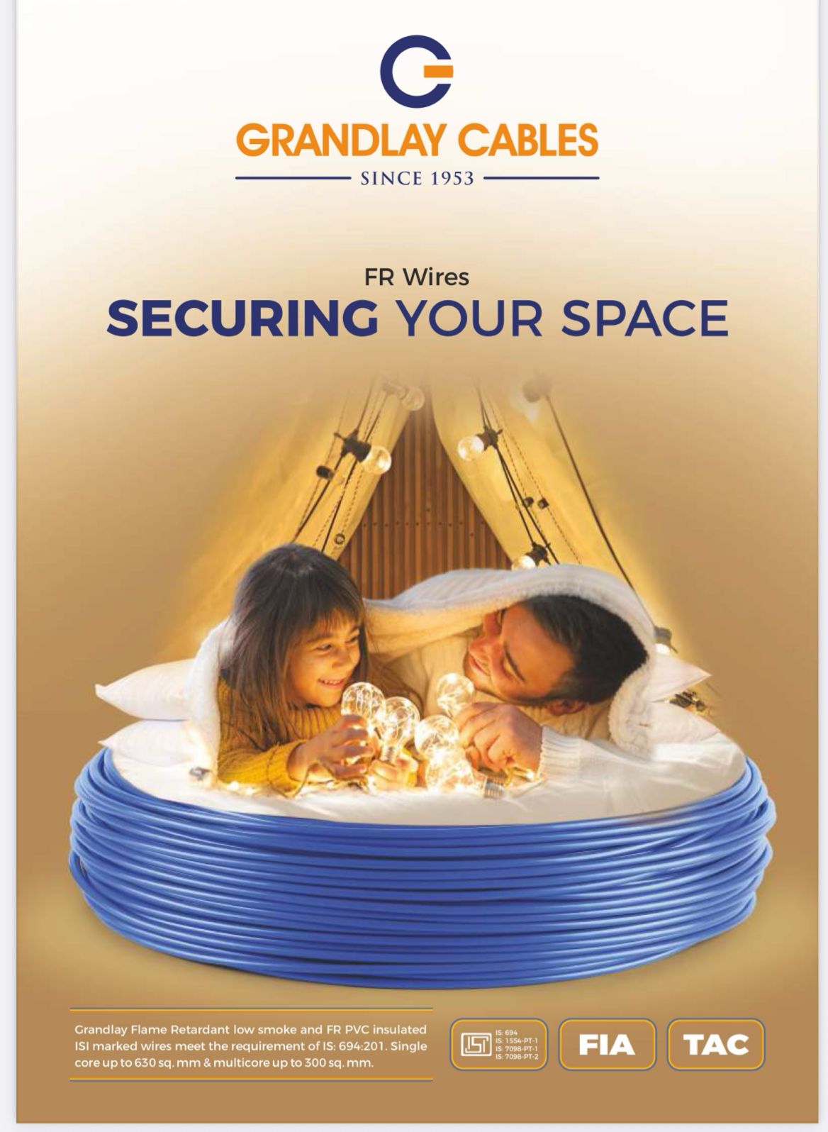 GRANDLAY cables carriers ISI standardization mark quality certification which assures complete safety, reliability & consistency in performance, look for the company name, size, vołtage grade and logo printed on the wire insulation everymeter.